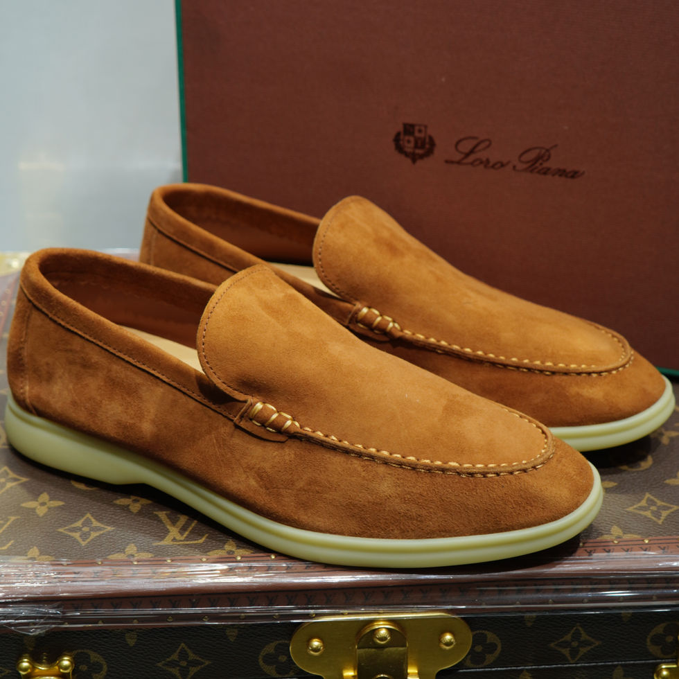 Mocassim confeccionado em camurça italiana premium, na elegante tonalidade camel. O modelo Summer Walk, da renomada Loro Piana, combina conforto e sofisticação em um design casual refinado.