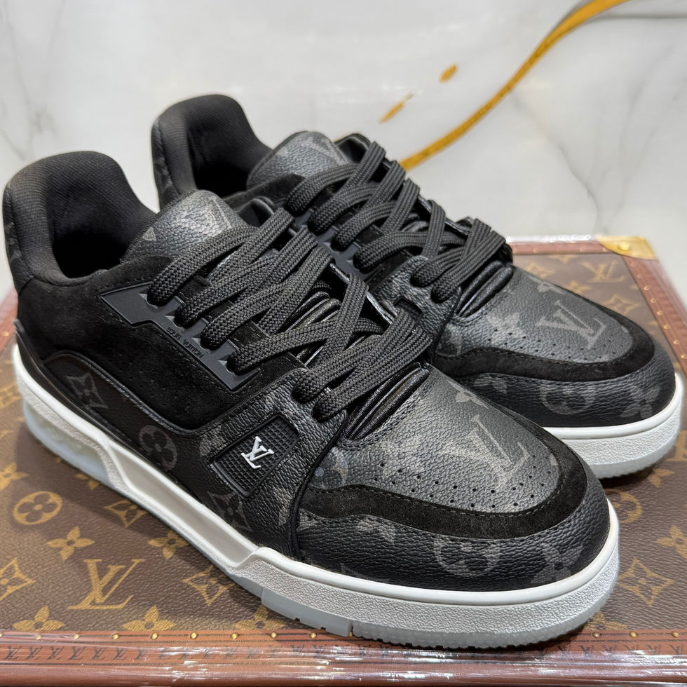 O sneaker LV Trainer, desenvolvido por Virgil Abloh, diretor criativo da Louis Vuitton, é revisitado nos canvas Monogram Eclipse e Monogram Reverse. Inspirado nos tênis de basquete, este modelo cult possui cabedal de construção elaborada, costurado durante sete horas. O solado de borracha branco contrastante, decorado com Monogram Flowers, completa o modelo.