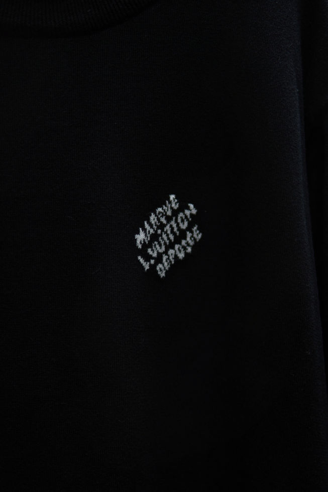 Esta elegante blusa preta de manga curta e gola redonda, confeccionada em malha fina de algodão orgânico, apresenta delicados detalhes em jacquard contrastantes. Entre eles, destaca-se a discreta inscrição "Marque L.Vuitton déposée" no peito e uma faixa com o monograma LV nos punhos, criando um elegante efeito gráfico. Esta peça versátil adiciona um toque de sofisticação aos looks do dia a dia.