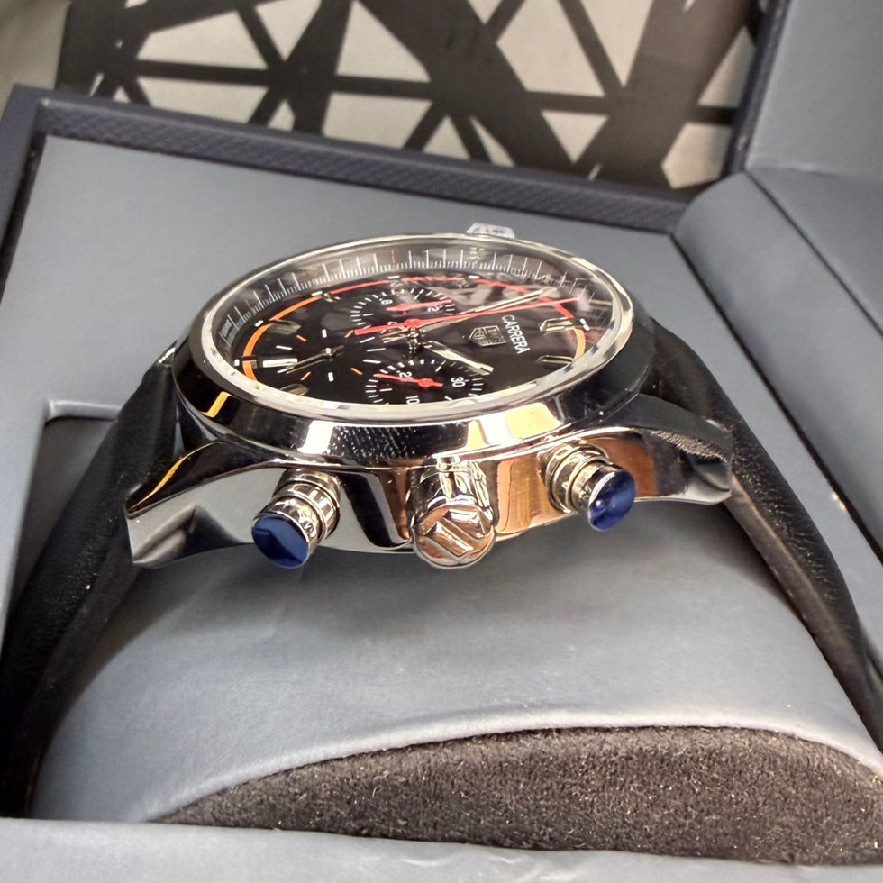 Representando a paixão duradoura da Maison pelas corridas, esta nova versão do TAG Heuer Carrera causa uma impressão marcante no pulso. O mostrador preto atemporal ganha vida com um degradê laranja dinâmico. Luxuoso e pronto para superar todos os desafios.
