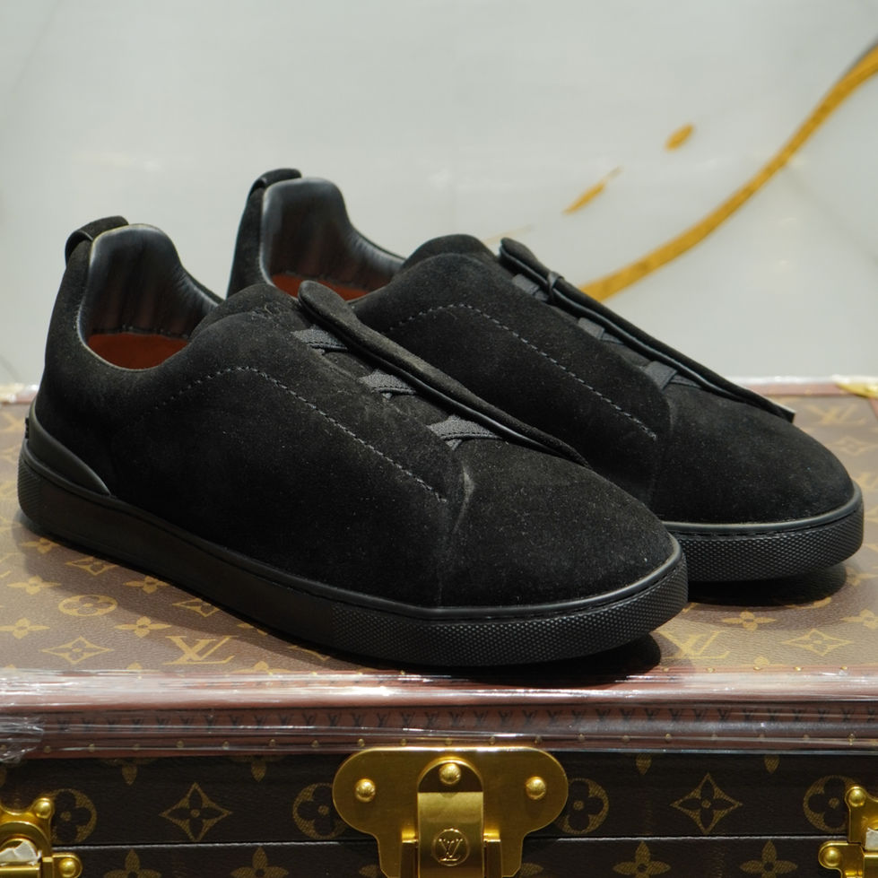 Trazendo elegância minimalista e conforto premium, este tênis apresenta cabedal em camurça preta de toque macio e acabamento uniforme. O design clean, sem cadarços aparentes, entrega um visual moderno e sofisticado, perfeito para quem busca discrição com classe.